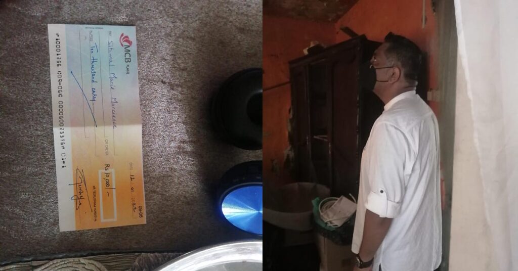 Chose promise, chose due après une visite l’an dernier ; ce jeudi 14 janvier, Vikram Hurdoyal s’est, de nouveau, rendu sur les lieux pour donner un chèque de 10 000 à Marie Maricienne Sitamal. Une somme d’argent qui servira à rénover la toiture de la maison de cette dernière.