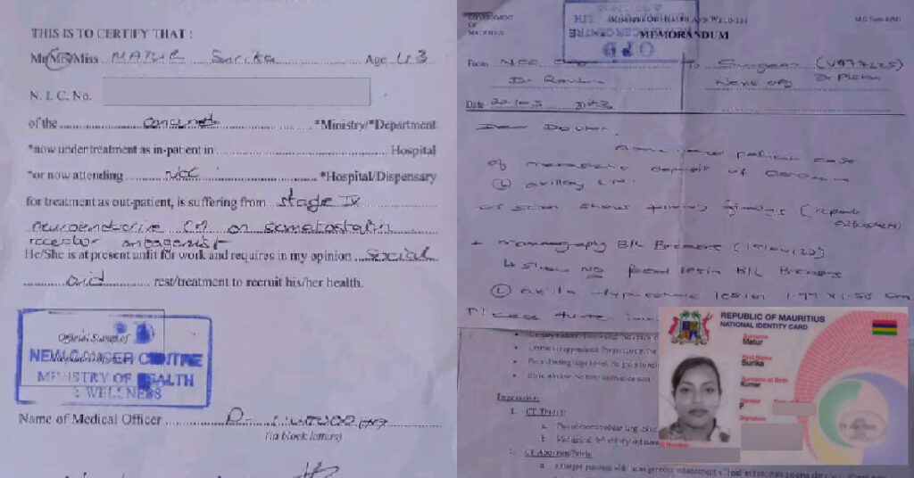 Les résultats sont sans équivoque. Sunita doit se rendre au New Cancer Hospital pour des tests avancés. Selon notre interlocutrice, elle a subi une nouvelle biopsie dans le privé à la demande de son médecin privé pour confirmer sa maladie. « Monn bizin ale Rose Belle pey Rs 25 000 pou fer sa. Kan rezilta finn vini, lerla zot finn konfirm mwa ki mo ena enn timerr dan pankrea. Monn bizin pey Rs 65 000 ankor pou avoy analyz », confie-t-elle.