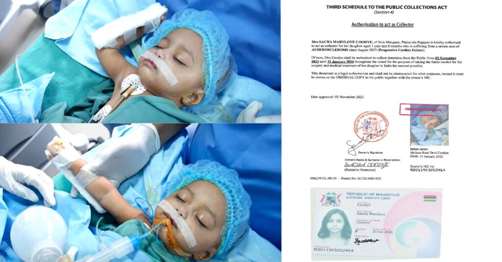 Elle s’appelle Melissa, et elle est âgée de 1 an. A cet âge, ce bébé souffre d’un problème cardiaque connu comme athérosclérose avancée, une pathologie redoutablement silencieuse aux conséquences parfois fatales. Sa mère, Sacha Marylove Coodye, a besoin de trouver les finances nécessaires pour payer ses traitements en Inde. Elle lance un appel de solidarité envers les Mauriciens pour contribuer généreusement.