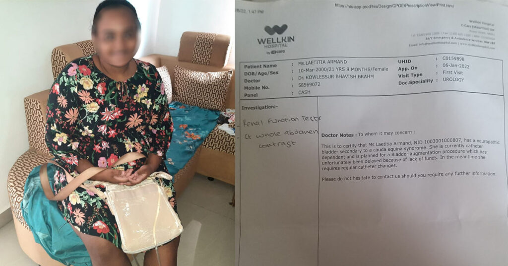 À l’heure où elle devait se concentrer sur ses études tertiaires à l’Open University of Mauritius, Laetitia Armand fait face à de nombreuses complications de santé. Cette jeune habitante de Grand Baie a été diagnostiquée avec le syndrome de Cauda Equina, en 2021. Ce qui lui a occasionné d’autres complications et qui nécessite d’autres traitements.