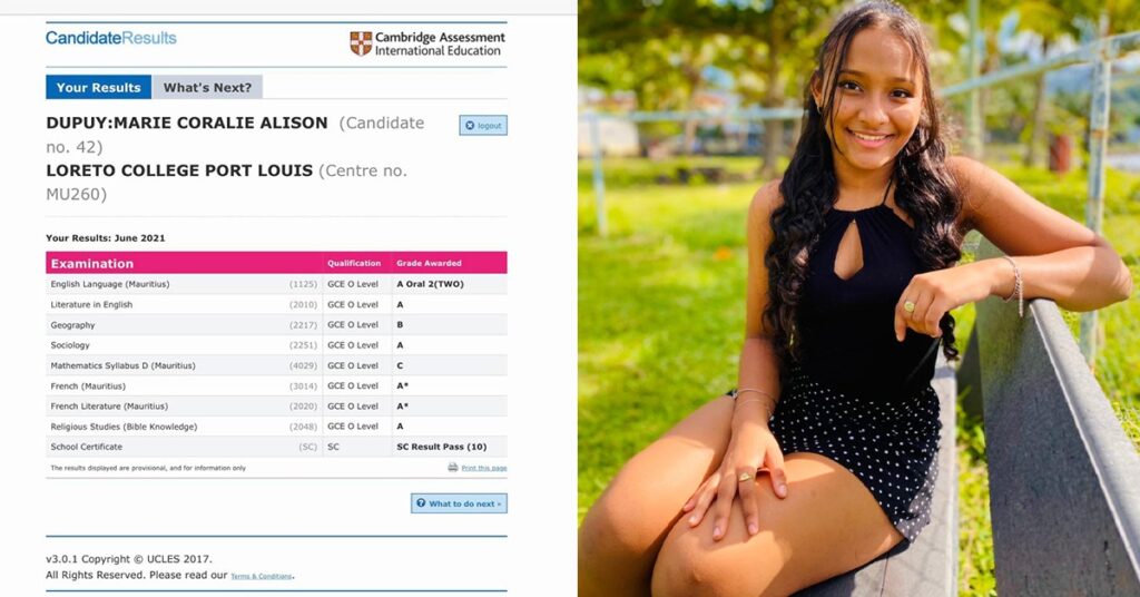 Avec le passage de la Covid-19, le système éducatif à l’Île Maurice a été chamboulé. De ce fait, les élèves ont dû prendre part à leurs examens du SC pendant le confinement et avec des restrictions sanitaires strictes. Avec les syllabus de ces épreuves qui ont changé pour cette cuvée, Alison voulait à tout prix décrocher ses 5 crédits pour gripper en Grade 12 (ex-Lower Six).
