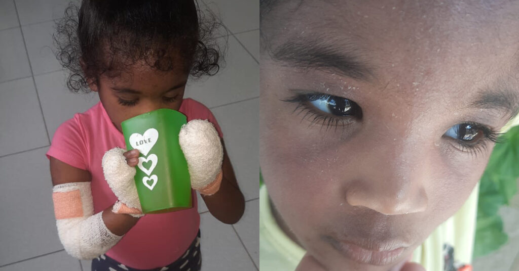 Iris n’avait que deux mois lorsque ses parents ont découvert que leur benjamine souffre d’un problème de peau aigu. Malgré plusieurs va-et-vient chez le pédiatre et les médecins de l’hôpital de Flacq, la condition de santé d’Iris s’est aggravéé de jour en jour. De ce fait, elle a été privée d’une enfance normale. « Ena fwa li pas kapav ale lekol akoz so lapo irite. So bann miss kompran ek ed li dan lekol me ena fwa li difisil pou li-mem », explique sa mère.