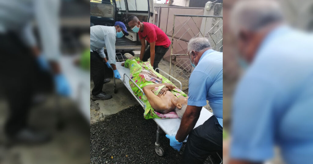 Au moment de démarrer la visite médicale, une odeur nauséabonde était palpable dans l’air. Si bien que cela dérangeait. Contre toute attente, Lynemay a eu le réflexe de défaire les bandages autour du pied de Mukesh. Elle a été horrifiée de découvrir des asticots. Une poignée d’asticots, une cinquantaine environ, est tombée dès qu’elle a enlevé les bandes. Il y en avait encore dans les plaies de Mukesh. Sans perdre une seconde, Lynemay entreprend des démarches auprès de l’hôpital Jeetoo pour dépêcher une ambulance sur place. Trois heures après, l’ambulance arrive. Les ambulanciers ont eu toutes les peines du monde pour embarquer le quinquagénaire sur une civière. Car les punaises et les asticots pleuvaient littéralement de son corps. « Pa ti facil. Mo fine vraiman touché par ce ki mo fine trouvé. Mo fine telefone a gaus a droit pou rod l’aide. Zordi missié la fine admet lopital Jeetoo. Nou fine avoye linz ek lezot accessoires », nous a raconté avec peine, hier, notre soldate Lynemay.