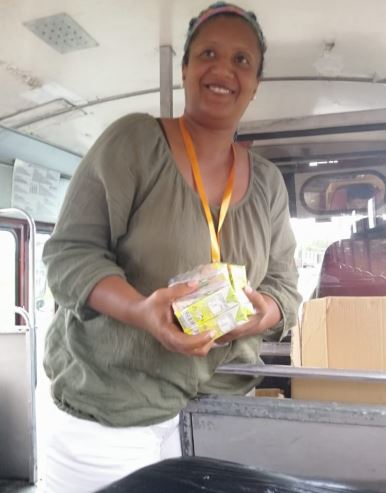 Fabiolla, membre de la SMP de Souillac, était accompagnée de ses amies. « C’est ene la joie intense pou nou vine la zordi, nou tou ti solidaire cuma ene famille. Cuma nou dire Solidarité Marye Pike, nou fine partage t-shirts, jus et du pain pou ban pelerins. Premier fois mone vine Grand-Bassin et c’est vraiment super. Et m espéré vini l’année prochaine encore avec la grâce de la SMP. Mo remercier missier Lee Shim qui sans li tousa pas ti pu possible. »