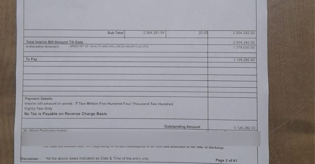 Bien que Guy Carpen ait bénéficié de la somme de Rs 1 million du ministère de la Santé, Milenne explique qu’elle doit encore trouver de l’argent pour payer les frais pour le traitement de son père. «Lopital inn inform mwa ki kass inn gagne avek Overseas Treatment Scheme la inn fini ek ki nou bizin koumsa peye par nou mem. Banla inn fer mwa kone ki mo bizin pey enkor Rs 1.1 million(ndlr : roupies indiennes) » poursuit cette habitante de Grande-Rivière-Sud-Est. Avec l’état de santé de son père qui s’améliore graduellement, les responsables de l’établissement hospitalier ont demandé à Milenne d’effectuer le paiement.
