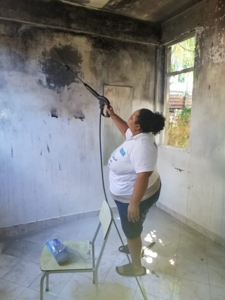 Une semaine après l’incendie qui a ravagé une partie de la maison de Marie-Louise Parsooramen à Résidence La Cure, toute l’équipe de la Solidarité Marye Pike s’est mobilisée en grand nombre en ce lundi 23 août pour une opération de nettoyage.Le nettoyage après un incendie est une opération très délicate. À travers ce geste de solidarité, l’équipe a voulu apporter tout leur soutien à leur collègue qui a tout perdu lors de cet incendie qui a éclaté dans la soirée du samedi 14 août. Balai, tuyau d’arrosage, karcher et serpillière en mains, elles ont nettoyé de fond en comble pour enlever toutes les traces de suie sur le béton. Même les zones indirectement touchées par le sinistre ont été souillées et ont nécessité une intervention spécifique d’entretien. Une opération qui a duré plus de six heures.« Marie-Louise est une collègue. C’est le moins qu’on peut faire pour elle. C’est comme ça à la SMP », confie Josiane Chung, Head de la région.En effet, après cette opération de nettoyage, la SMP interviendra pour offrir de la peinture, des panneaux de vitres et aussi du fil électrique. Marie-Louise pourra de nouveau habiter sa maison fraîchement remise en état.